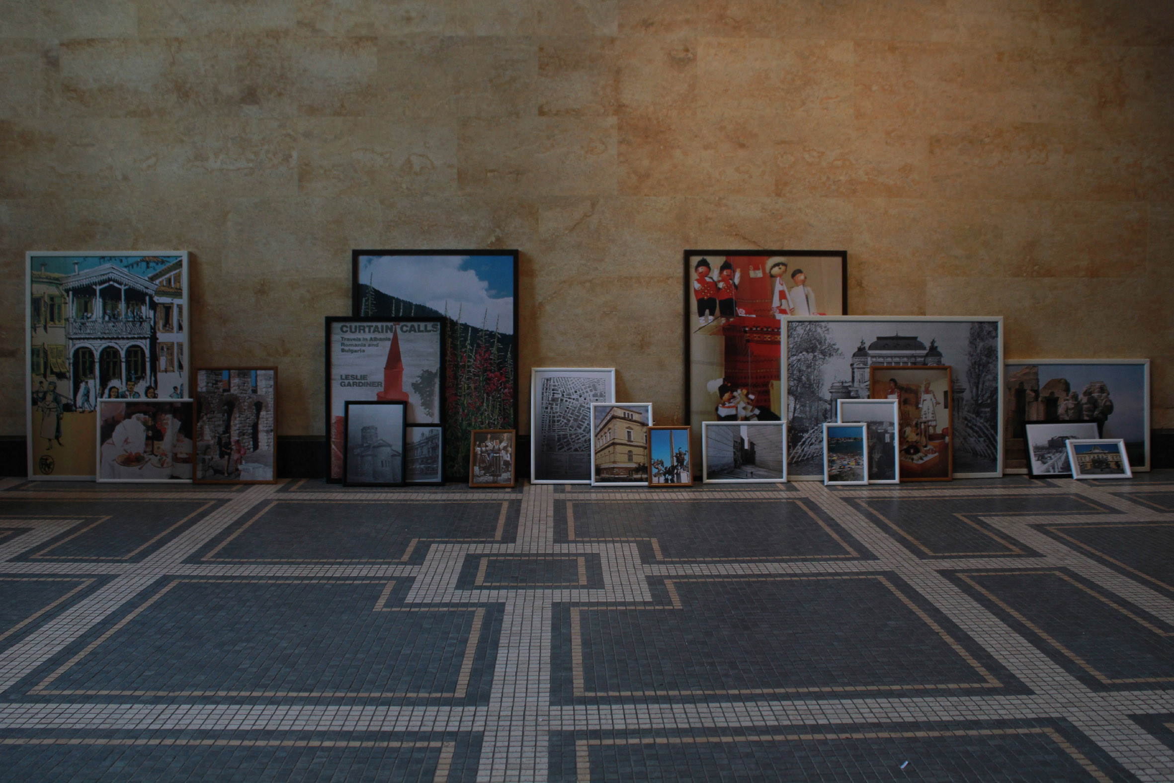 ‘Sight Seeing’ is an installation made with images re-photographed from Bulgarian travel-guides produced in the UK over the course of a fifty-year period (1961 – 2011). As well as conveying information about the country and highlighting sites of interest, these guides reveal attitudes about Bulgarian culture and the wider context of the former Eastern-Bloc that are specific to British culture at the time of their publication. Framed, but informally arranged on the floor, the pictures appear as a collection of generic images awaiting exhibition and clichéd attitudes awaiting re-appropriation. The installation also demonstrates how art museums co-exist with other attractions as aspects of the tourist industry – yet another scheduled stop on a sightseer’s agenda.
